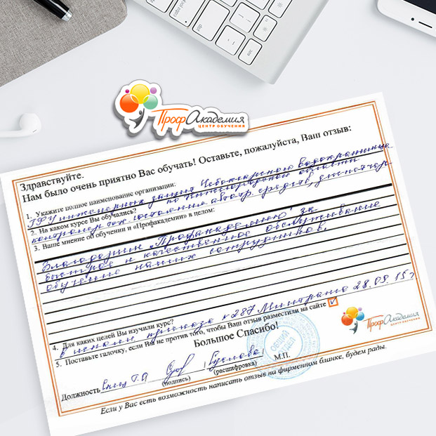 Благодарим "Профакадемию" за быстрое и качественное обслуживание обучение наших сотрудников.